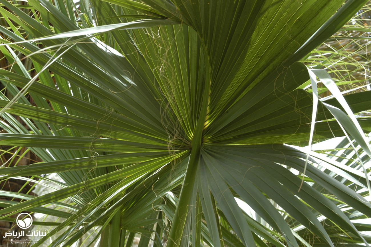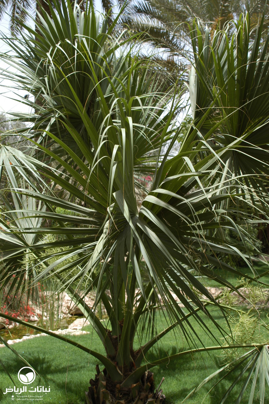 موطنه الأصلي فلوريدا. وهو نبات حسن المظهر ويمكن أن ينمو جيداً في حدائق مدينة الرياض. والساق رمادية اللون والجزء الأسفل منها أملس بينما الجزء الأعلى مغطى ببقايا قواعد الأوراق القديمة مرتبة بصورة متقاطعة. ولا يوجد عمود للتاج وتخرج الأوراق الكبيرة من الساق مباشرة منتشرة في الاتجاهات جميعها. وينمو هذا النخيل حتى ارتفاع 15-20 متراً وله تاج مستدير يبلغ قطره 4-5 أمتار. والأوراق مروحية قوية ذات نصل ناصع الخضرة إلى زيتوني اللون قطره 2-3 أمتار. وعنق الورقة عديم الأشواك ويمتد حتى نهاية نصل الورقة. وقمم الوريقات منشقة وبها ألياف على الحواف. وتحمل الأزهار في شكل مجموعات على حوامل متفرعة متدلية. والأزهار صغيرة كريمية بيضاء ذات رائحة تظهر في الصيف. والثمار صغيرة مستديرة سوداء اللون عند نضجها. والبرعم القمي الغض الذي يوجد داخل التاج يؤكل مثل القرنبيط. وهذا النبات متأقلم مع كل أنواع التربة الرطبة جيدة الصرف. وهذا النبات يلائمه ضوء الشمس الكامل إلى الظل الخفيف والذي يزيد من حجم التاج. وهذا النبات له مقدرة على تحمل الجفاف والجو البارد ومقاوم للصقيع حتى – 10 مْ . كما أنه مقاوم للرياح. وله مجموع جذري قوي عميق ويتطلب الري المنتظم. والإكثار يتم عن طريق البذور. ومناسب لتزيين الطرق والمسطحات الخضراء. وهو نبات سهل الرعاية وحاجته إلى الصيانة قليلة.